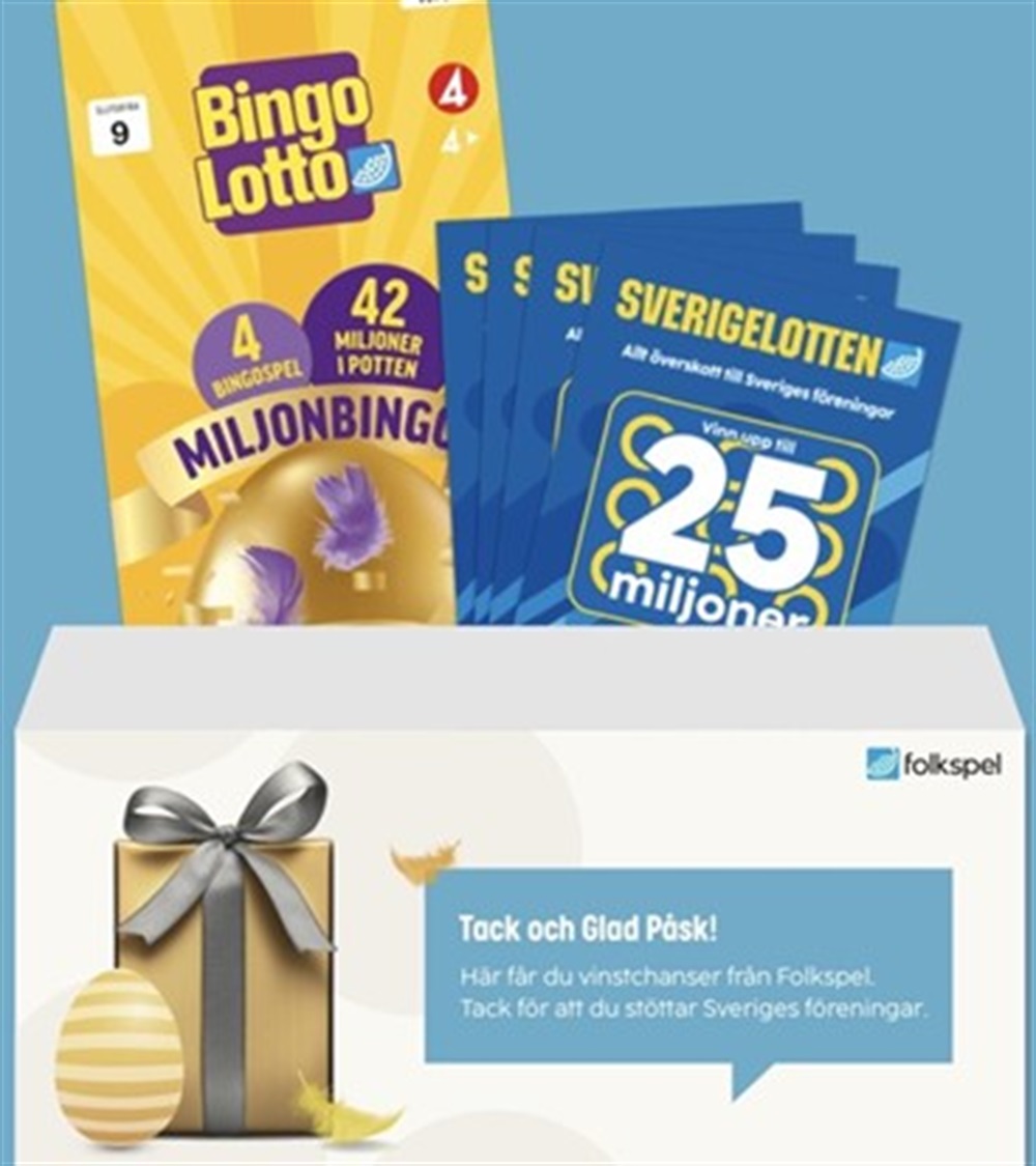 Varje spelare får ett kuvert med fyra paket som innehåller 1 bingolott och en remsa (4st) Sverigelotter. Ett paket kostar kunden 200 kr,...
